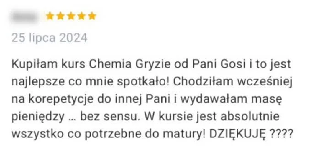 Jeśli szukasz oszczędności czasu i pieniędzy, mamy dla Ciebie świetną wiadomość: nie wydasz ani złotówki więcej. Nasz kurs został zaprojektowany tak, by w pełni zastąpić nie tylko drogie korepetycje, ale także stosy dodatkowych ćwiczeń i repetytoriów. W kursie znajdziesz wszystko, co niezbędne: 100% materiału zgodnego z aktualną podstawą programową – Twoje dziecko uczy się dokładnie tego, co jest wymagane w szkole. Pełna ścieżka od teorii po praktykę – wyjaśniamy każdą definicję i pokazujemy, jak rozwiązać nawet najtrudniejsze zadania z podręcznika. Gotowy system powtórek – koniec z kupowaniem dodatkowych książek przed sprawdzianami. Masz tutaj wszystko, czego Twoje dziecko potrzebuje, aby czuć się pewnie na lekcjach, sprawnie odrabiać zadania domowe i cieszyć się z zasłużonych "piątek" i "szóstek".
