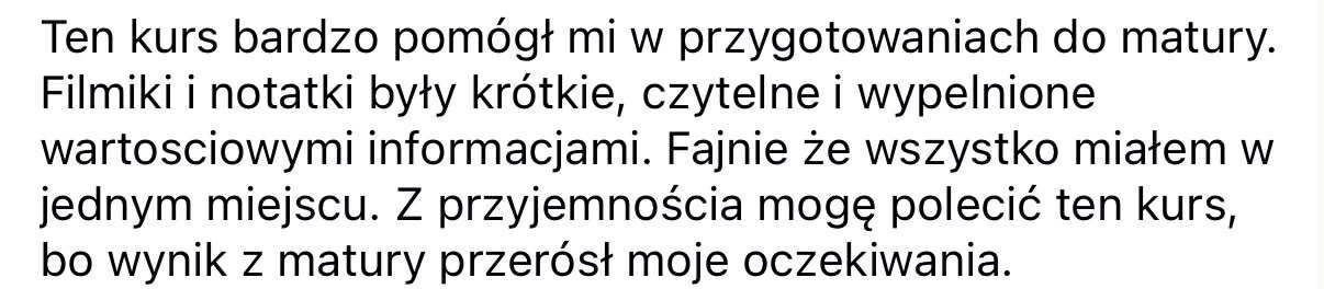Tak, 14 dniową! Nasze materiały są na bieżąco dostosowywane do aktualnej podstawy programowej i najnowszych wytycznych CKE. Uczysz się więc tylko tego, co naprawdę pojawi się na maturze – bez zbędnych treści i przestarzałych informacji.