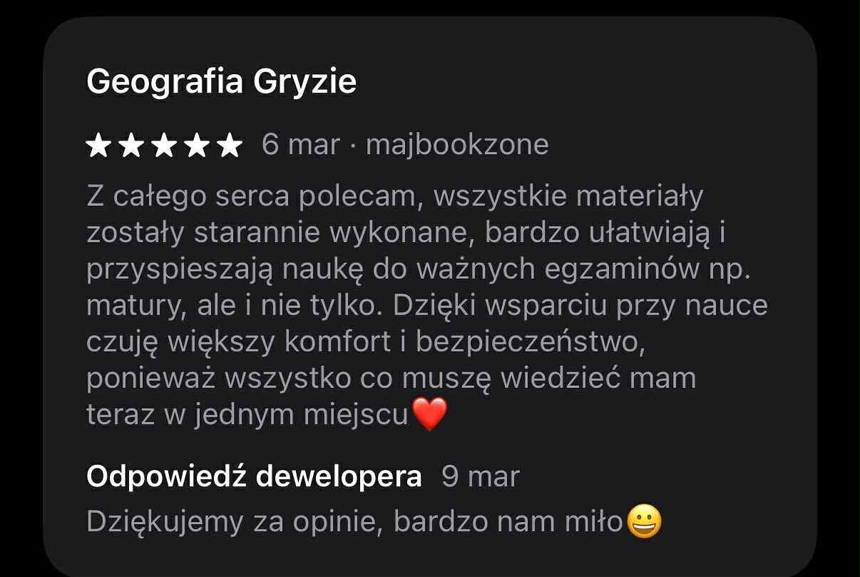 Mamy nadzieję na równie wspaniałe opinie kursu z geografii! 🥰