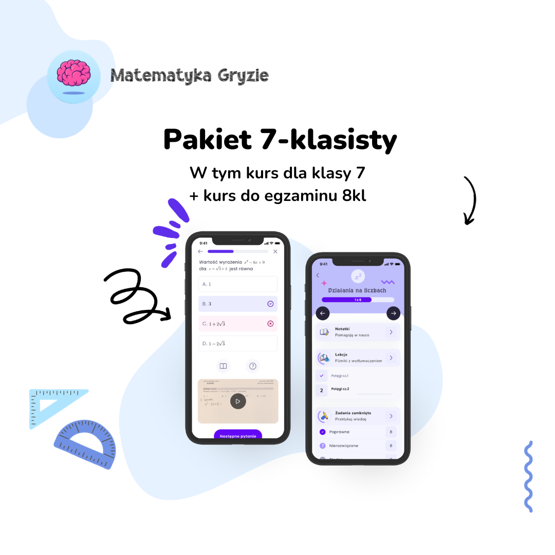 Najlepszym dowodem są efekty tysięcy zadowolonych uczniów i spokój ich rodziców. Zaufało nam już ponad 50 000 kursantów, a nasza aplikacja jest jedną z najlepiej ocenianych platform edukacyjnych w Polsce. Dlaczego nasz system jest skuteczny dla każdego ucznia? Twarde dane: Średnia ocen w Google Play to 4.7, a w App Store 4.5. To tysiące realnych opinii od osób, które dzięki nam poprawiły oceny i zdały egzaminy. Merytoryka na najwyższym poziomie: Treści tworzą czynni korepetytorzy i egzaminatorzy. Uczysz się więc dokładnie tego, co jest wymagane w szkole i sprawdzane przez CKE. Gwarancja satysfakcji: Jeśli dane Cię nie przekonują, pamiętaj, że chroni Cię nasza 14-dniowa gwarancja. Możesz zalogować się, sprawdzić lekcje i przekonać się na własne oczy, jak szybko Twoje dziecko (lub Ty sam) zacznie rozumieć matematykę. To my bierzemy ryzyko na siebie – Ty zyskujesz sprawdzony sposób na szkolne sukcesy bez stresu.