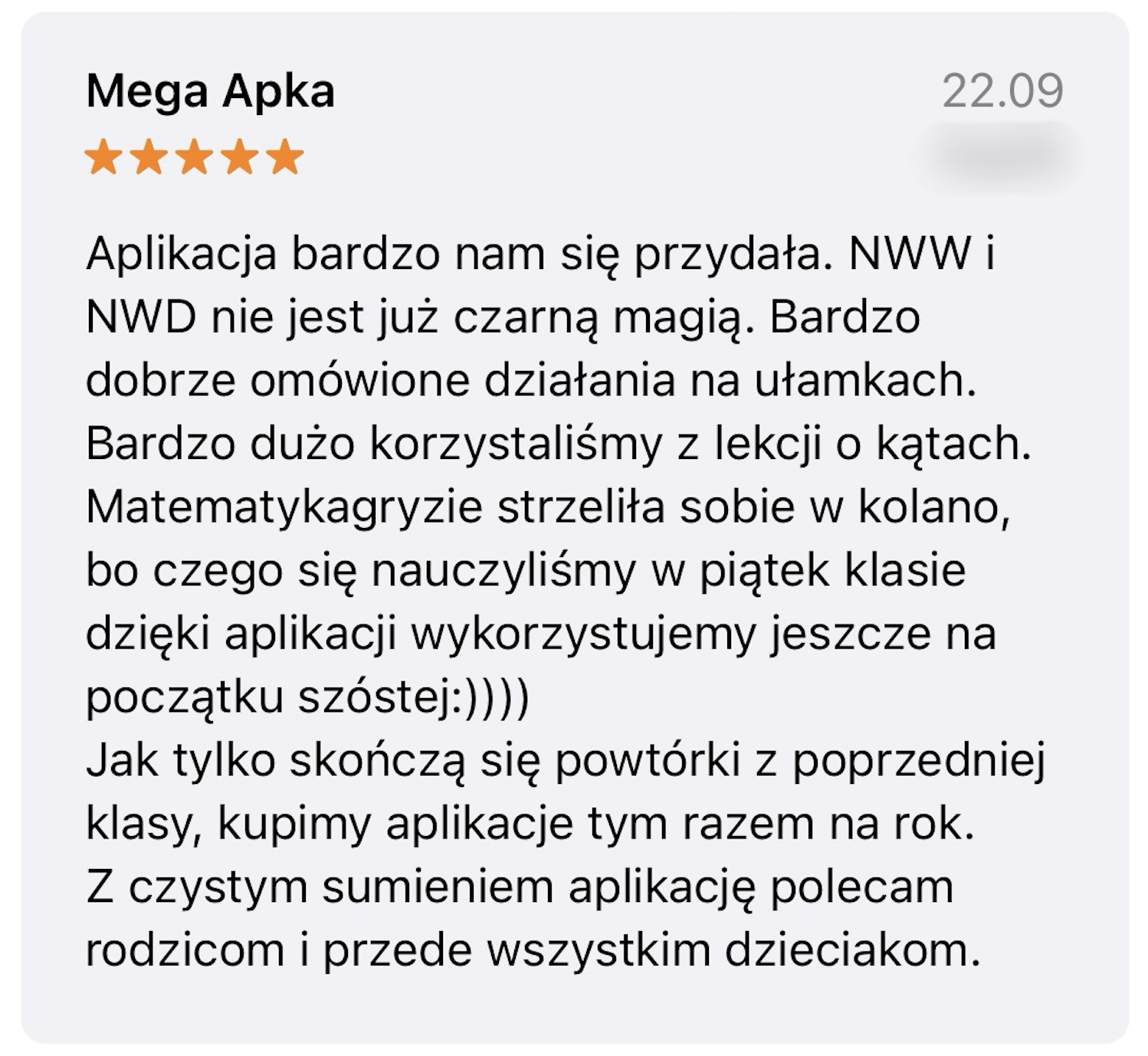 Najlepszym dowodem na skuteczność naszej metody są uśmiechy tysięcy dzieci oraz spokój ich rodziców. Zaufało nam już ponad 50 000 rodzin, a nasza aplikacja jest jedną z najwyżej ocenianych platform edukacyjnych w Polsce, utrzymując średnią 4.7 w Google Play oraz 4.5 w App Store. To tysiące realnych opinii od rodziców, którzy dzięki nam zamienili stres przy biurku na radość z postępów swoich pociech. Za merytorykę odpowiadają doświadczeni nauczyciele edukacji wczesnoszkolnej, co daje Ci pewność, że wszystkie zadania są w 100% zgodne z programem nauczania klas 1-3. Jeśli same liczby Cię nie przekonują, skorzystaj z naszej 14-dniowej gwarancji satysfakcji. Możecie wspólnie z dzieckiem zalogować się i sprawdzić interaktywne gry w praktyce. Jeśli nie zauważysz entuzjazmu u swojego dziecka – zwrócimy Ci pełną kwotę bez zbędnych pytań. My bierzemy ryzyko na siebie, Ty zyskujesz sprawdzony sposób na dobry start Twojego dziecka w szkole.